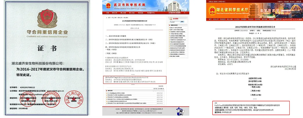 公司还被授予湖北省/武汉市“守合同重信用”企业、武汉市“千企万人”支持计划、“瞪羚企业”、“光谷生物城企业科技贡献奖”等社会荣誉。