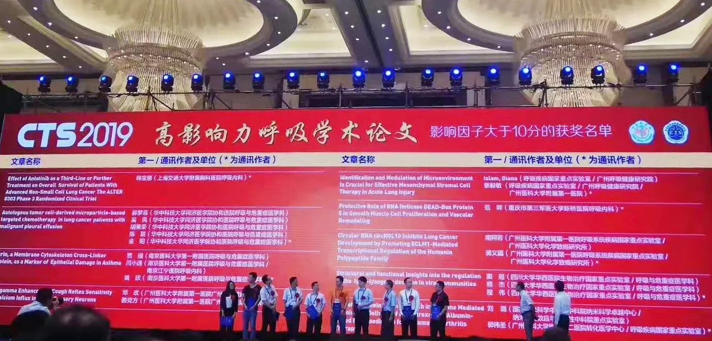 9月4日-8日,中华医学会呼吸病学分会年会-2019(CTS-2019)在武汉隆重召开。由湖北盛齐安生物科技股份有限公司自主研发的“载药囊泡治疗肿瘤技术”首度亮相CTS-2019,大放异彩:2位专家作专题报告,临床转化成果荣获《高影响力呼吸学术论文奖》,引起了众多参会专家和媒体的广泛关注和高度肯定,南方都市报、健康界、健康报、生命时报、39健康网、南方网、北方网等各界媒体对“载药囊泡治疗肿瘤技术”进行了全方位宣传报道。