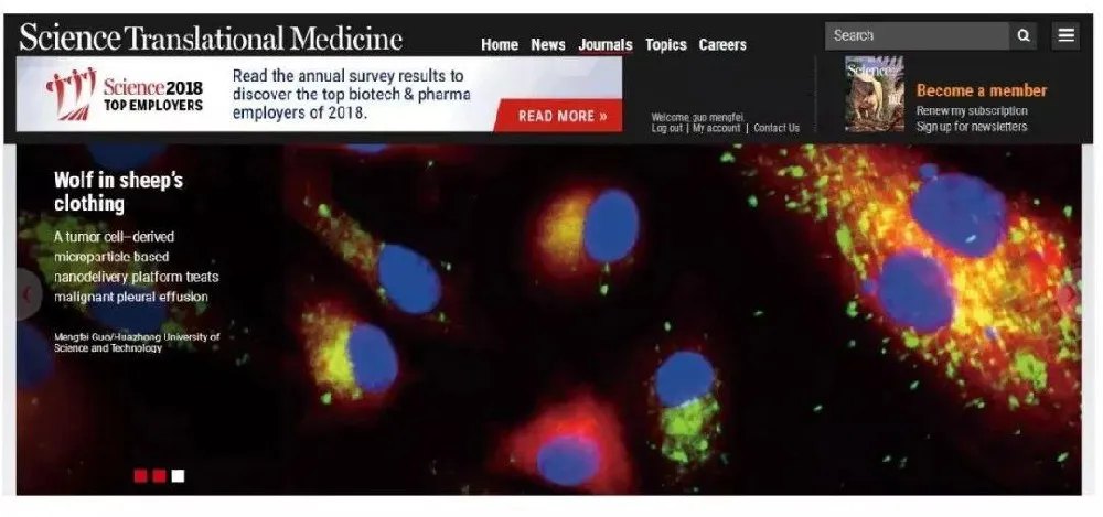 “载药囊泡治疗肿瘤技术”主要研究者之一、武汉协和医院金阳教授受邀出席本次大会,其团队采用中国原研的“载药囊泡治疗肿瘤技术”应用于恶性胸腔积液的治疗,并将临床转化研究成果发表在《Science》转化领域影响因子最高的子刊《Science Translational Medicine》,论文标题为《Autologous tumor cell–derived microparticle-based targeted chemotherapy in lung cancer patients with malignant pleural effusion》,影响因子高达 IF:16.710,该论文还获得当期杂志的封面推荐。