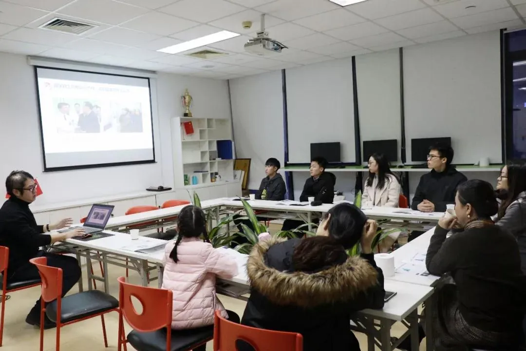 图为北京大学老师和校友听取载药囊泡技术项目汇报