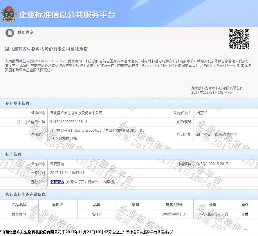 11月21日,从企业标准信息公共服务平台获悉 , 载药囊泡 技术首套企业标准正式诞生,标准编号 为 Q/SQA 0001S-2017, 这标志着在全球范围内, 载药囊泡技术 在产品质量检核 等 方面 有了...