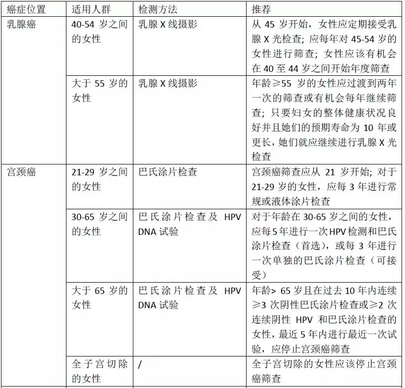 乳腺癌,宫颈癌筛查指南