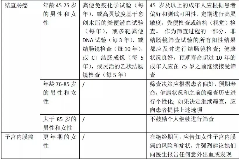 结直肠癌,子宫内膜癌筛查指南