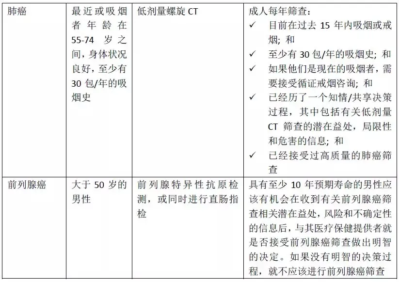 肺癌,前列腺癌筛查指南