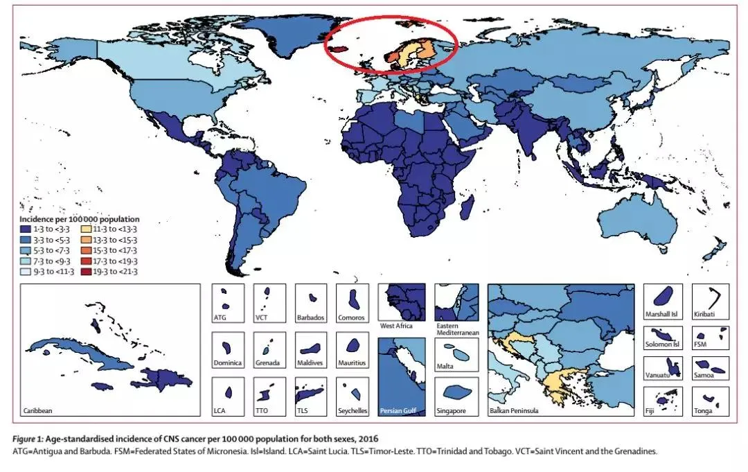 因此,加深对CNS癌症在各地区分布的了解, 有助于揭示其外部影响因素及其对流行病学模式的影响。