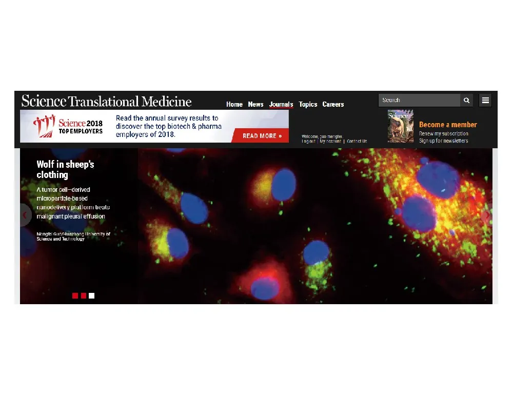【健康界】“载药囊泡治疗肿瘤技术”获《science》子刊封面推荐 为肿瘤长期缓解带来曙光