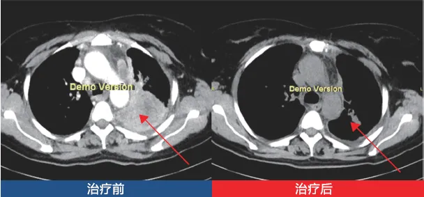 治疗后:CT对比显示胸水减少94.9%。
